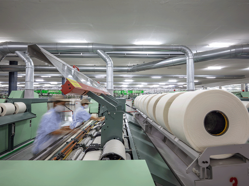 A high-speed yarn dispensing machine used by a certain line transfer factory in Taicang City, this model has a compact mechanism, easy installation and debugging, and a simple structure. The failure rate is extremely low, and it can realize mechatronics, single spindle control, electronic length, full cylinder stop, electronic stacking, photoelectric detection short yarn, and broken yarn stop. 2-3 strands of yarn can be combined into one strand and wound into a cylindrical cylinder. The theoretical maximum linear speed is 900M/min and the actual maximum linear speed is 850M/min. It is tried to be used for the combined processing of cotton, wool, polyester, chemical fiber and blended yarns. The application of our company series of frequency converters in the above simplifies process requirements and improves production efficiency.
